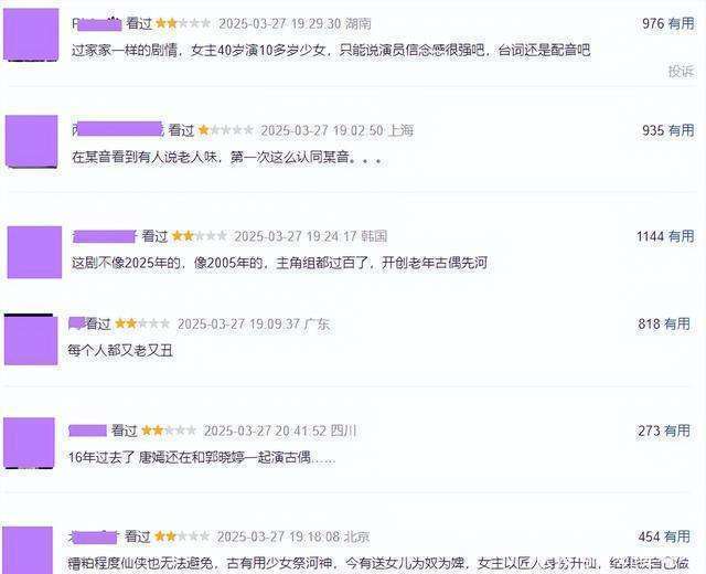 这部剧被差评,很大一部分原因在于选角。这其实也不怪观众太苛刻,实在是中年古偶剧给人的感觉就像是过期变质的食物,吃了只会让人肠胃不适。